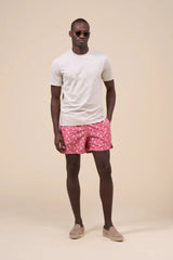 Embrace the Italian summer in unparalleled style with our iconic Madeira swim trunk. Crafted from recycled polyester, it offers a lightweight and quick-drying performance, drying out in only 90 seconds. The elastic waistband with drawstring ensures a perfect fit, while the contrast stitching and embroidered branding logo on the back pocket add a touch of refined elegance. Elevated with Summer-y pattern.