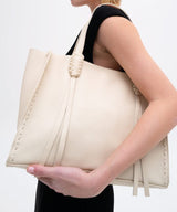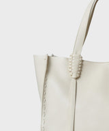 A more compact size of the classic Ara Tote. The Ara Medium Tote features a structured silhouette and is adorned with signature macrame at the base of he handles. This versatile tote bag design boasts a spacious interior for daily essentials or travel.