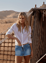 Retain your love of denim by adding the Alexi Shorts to your destination wardrobe. Softly faded with cut-off frayed hems, they’ll quickly become a summer staple whether you’re enjoying a coastal location or a city break. Taking cues from ‘70s styles, this pair features lace-up fastenings with gold-tone rivets and signature branded cord ends adding to their luxe appeal. A classic 5 pocket design and belt loops provide a practical addition to their relaxed, understated design.