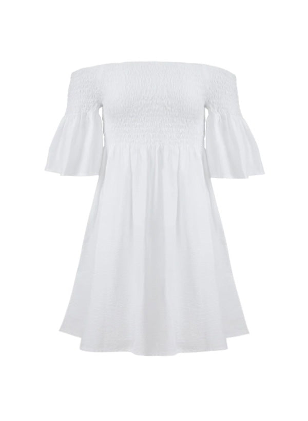 Arianna Smocked Bell Sleeve Mini Dress White