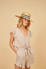 This laidback style is an all-time classic. Comfortable and yet feminine, the Erifylli playsuit is made from 100% linen and features ruffled sleeves and hemline, and an adjustable drawstring waist. Wear it with a pair of nude sandals.