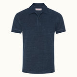 Orlebar Brown's classic Jarrett holiday polo shirt is updated in deep blue indigo toweling with the signature ribbed collar and cuffs. An instant holiday classic!
