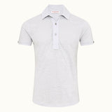 The Sebastian was Orlebar Brown's first tailored polo and has remained a best-seller. Smartly styled and shaped with a two-part collar, button cuff detail, and a curved hem, it also features a deep three-button placket to give you a more open neckline.