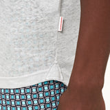 Orlebar Brown's Sebastian linen polo shirt in Serenity Blue is the ultimate holiday style. Breathable, absorbent, resilient, and flattering — what more could you want in a holiday polo shirt? This short-sleeved style boasts our signature two-piece collar and deep button placket.
