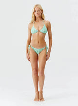 Add playful prints to your swimwear collection with the Costa Bikini Top. Crafted from soft, premium swim fabric, this style is emblazoned in our green and white Medina motif. The triangle top features classic halter ties with luxe gold double ring trims at the centre of the bust. Match with the Costa bikini bottoms in the matching print for a chic assemble.