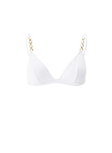 Dazzle as you relax on the beach in the Mexico Bikini Top. Perfect for showing off sun-kissed skin, this White style is crafted from soft, breathable swim fabric and provides SPF 50+ protection. Updating the classic triangle design, the top features over-the-shoulder straps, a clasp fastening at the back and a contemporary, chunky four-link gold trim. Pair with the matching Mexico Bikini Bottoms to complete the set.
