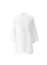 Add to your beach cover-up collection with the Sebena Kaftan. The perfect addition to your destination wardrobe, this chic White piece is crafted from pure, premium cotton. Falling to a short, mid-thigh length, it boasts delicate crochet detailing throughout and elegant bell sleeves. Tying at the neck, it features our signature gold branded cord-ends and is finished with pretty scalloped edges. Pair with the Phoenix Bikini for an effortless look.