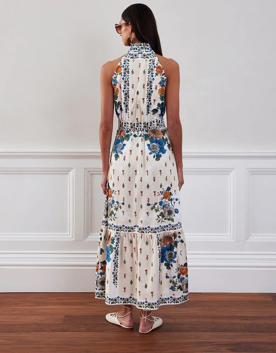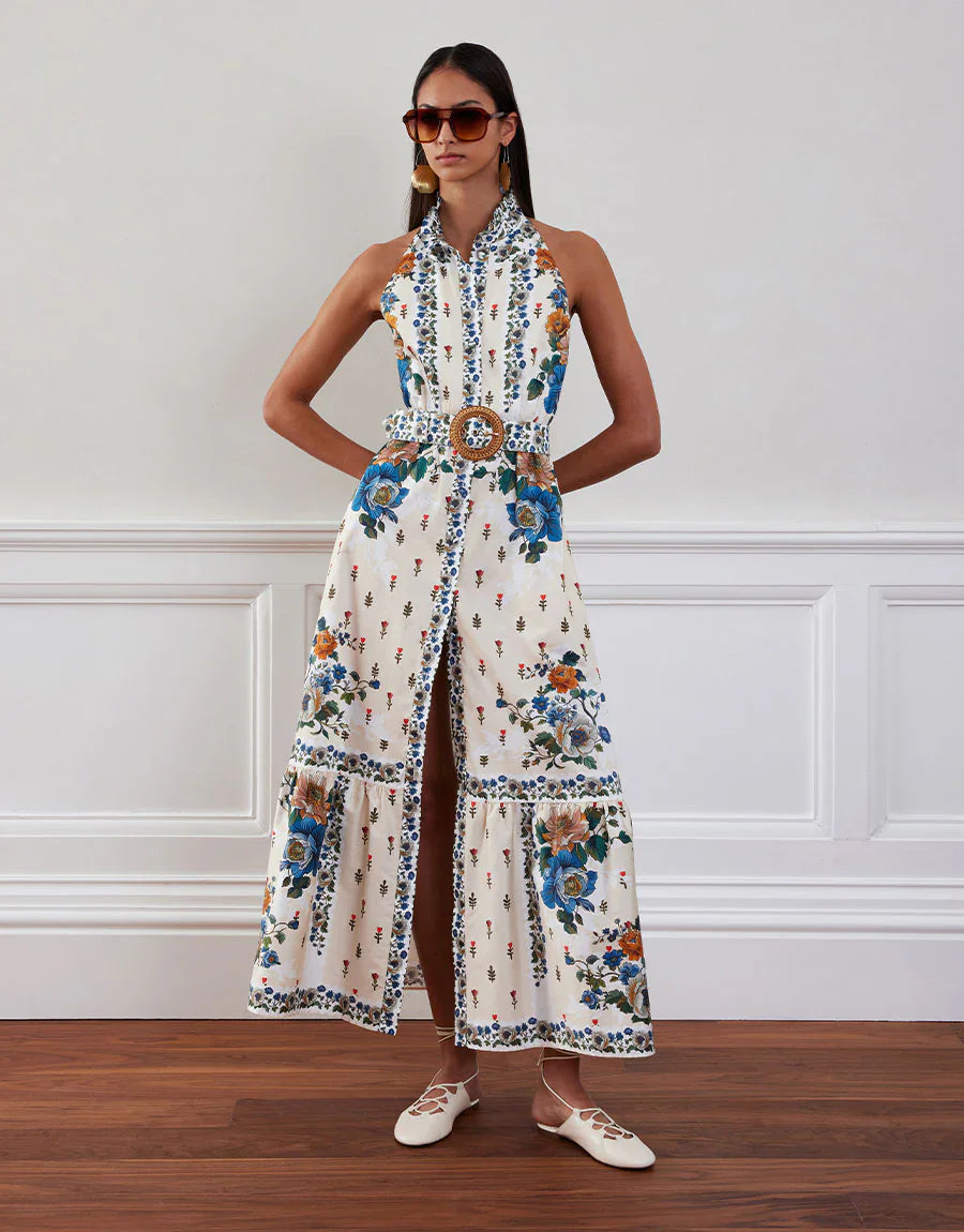 A must-have evolution of the best-selling Biba. The satin-soft cotton showcases sculptural bouquets placed to flatter and create movement. With a ruffled collar and halter-inspired neckline, it’s ethereal, feminine and beautifully versatile.