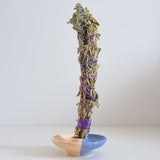 White Sage and Lavender make up our signature smudge stick. All the ingredients are certified organic, and hand-picked from the area of Mount Olympus in Greece. It is bound by hand with 100% organic cotton thread.