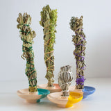 Once you're ready to extinguish a sage smudge stick, press the burning tip firmly into a fireproof vessel, dirt, or sand until the smoke no longer rises.