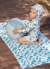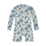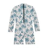 Elevate sun-safe sophistication with the unisex long-sleeve swim bodysuit, crafted from premium, quick-drying and sustainable fabric, offering UPF 50+ protection for your little ones. This charming piece showcases a vintage print, bringing a playful touch to poolside elegance. With a sleek high neck, and a green zipper, it embodies the epitome of both style and sun safety. Let your little one make a splash in this delightful fusion of protection!