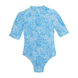 Embark on a wild adventure with the captivating iris print, infused with playful charm and vibrant hues of blue and turquoise sea depth. Your little one will be enchanted by the whimsical world depicted in this sea depth-inspired design. The classic one-pieces are reimagined this season, offering UPF 50+ sun protection, sustainable fabric and versatile short-sleeved options for carefree days by the shore.