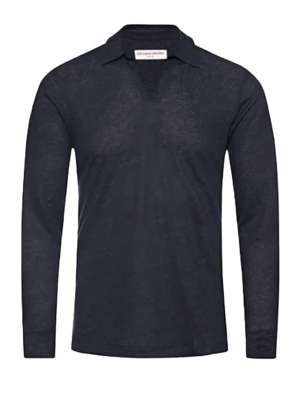 Orlebar Brown's classic Felix polo shirt updated for a new season in breathable slub linen — the ultimate holiday fabric. Partner this long-sleeved polo in deep Night Iris with matching linen shorts or chinos.