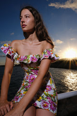 An updated take on Borgo De Nor's bestselling Farrah, the Nalani is a joyful mini that packs a punch. The ruffled neckline gives this style a flirtatious twist and is set off by Borgo De Nor's exquisitely feminine Peonia Print. When designing the Nalani, Borgo De Nor was inspired by the minimalism of 90s silhouettes which is mirrored in the smoothly fitted body and off-the-shoulder sleeve. Pair this with barely-there sandals and sun-kissed summer skin.