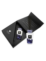 The hand-made cobalt blue ceramic cap adorns the Totem Feathers Touareg bottle with an imaginary turban similar to those worn by the “blue men” of the desert.