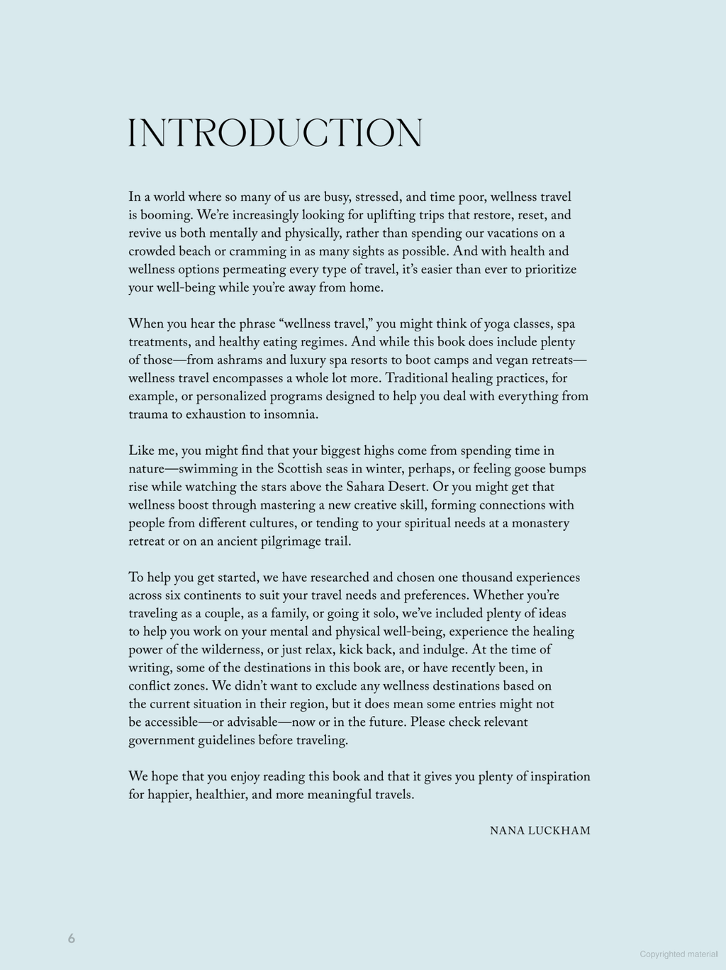 For anyone seeking calming and therapeutic wellness respites, this aspirational guide contains 1,000 travel ideas organized geographically. Every aspect of wellness and self-care is covered: rid yourself of negative energy in a sweat lodge in Mexico; unwind with yoga in a tree house cabin by the Caribbean in Tobago; harness the healing power of seawater in France; practice the art of forest bathing in Japan; go on a wellness cruise down the Mekong in Vietnam; engage in holistic healing therapies in a former Maharaja’s palace in India; learn more about gut health and gastronomy in California; experience holistic healing arts in the Hamptons . . . the possibilities are endless.