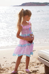 Inspired by the carefree spirit of coastal living, the shirred dress in the "paisley mix" print captures the essence of beach adventures with its dynamic design and playful details. The spirited paisley mix print, accompanied by shirred detailing, mirrors the excitement of garden escapades filled with all shades of pink, lilac and turquoise. Crafted with meticulous attention to detail, this dress exudes summertime charm with its relaxed silhouette and beachy vibes. Made from a lightweight and breathable fabric, it ensures your little one stays cool and comfortable even in the warmest of temperatures, making it the perfect choice for seaside escapades or picnics by the shore.