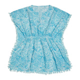 The kaftans with the V-neck, elasticated waist and playful pom-pom details around the edges, are an absolute must-have for your little angels! This one, decorated in the signature paisley turquoise for this summer, is the perfect throw-on for blissful beach moments! Combine it with the matching swimsuits and shorts and…dress to impress!