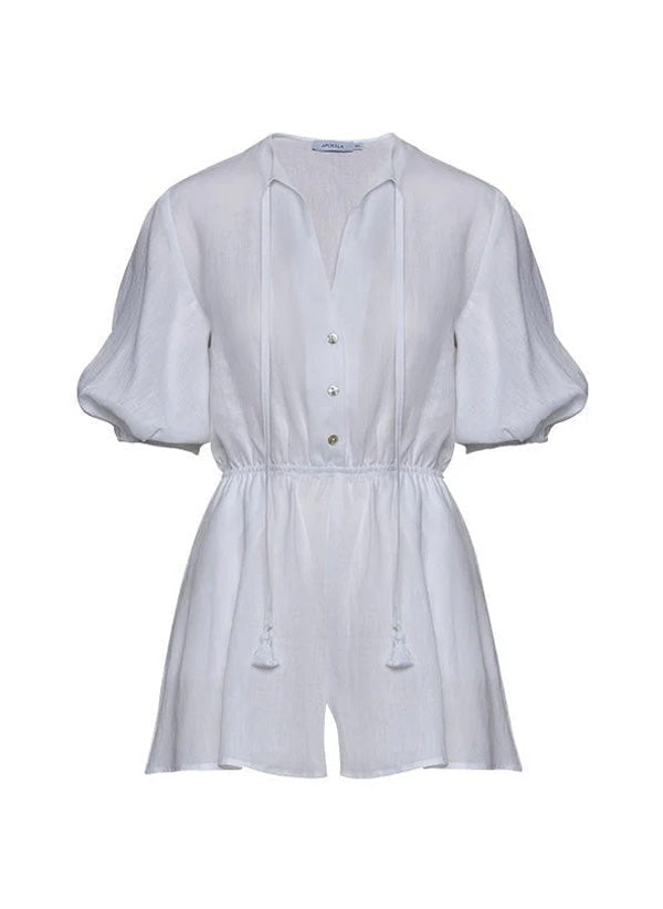 Effortless elegance meets warm-weather comfort with the Persephone Linen Playsuit – your go-to for chic coastal living. Crafted from 100% breathable linen, this lightweight romper features a flattering cinched waist, relaxed puff sleeves, and a plunging neckline for that perfectly undone look.