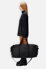 Hilo Weekend Bag Large is cut from Rains’ signature waterproof PU fabric, engineered for carrying strength, durability, and a smooth feel.