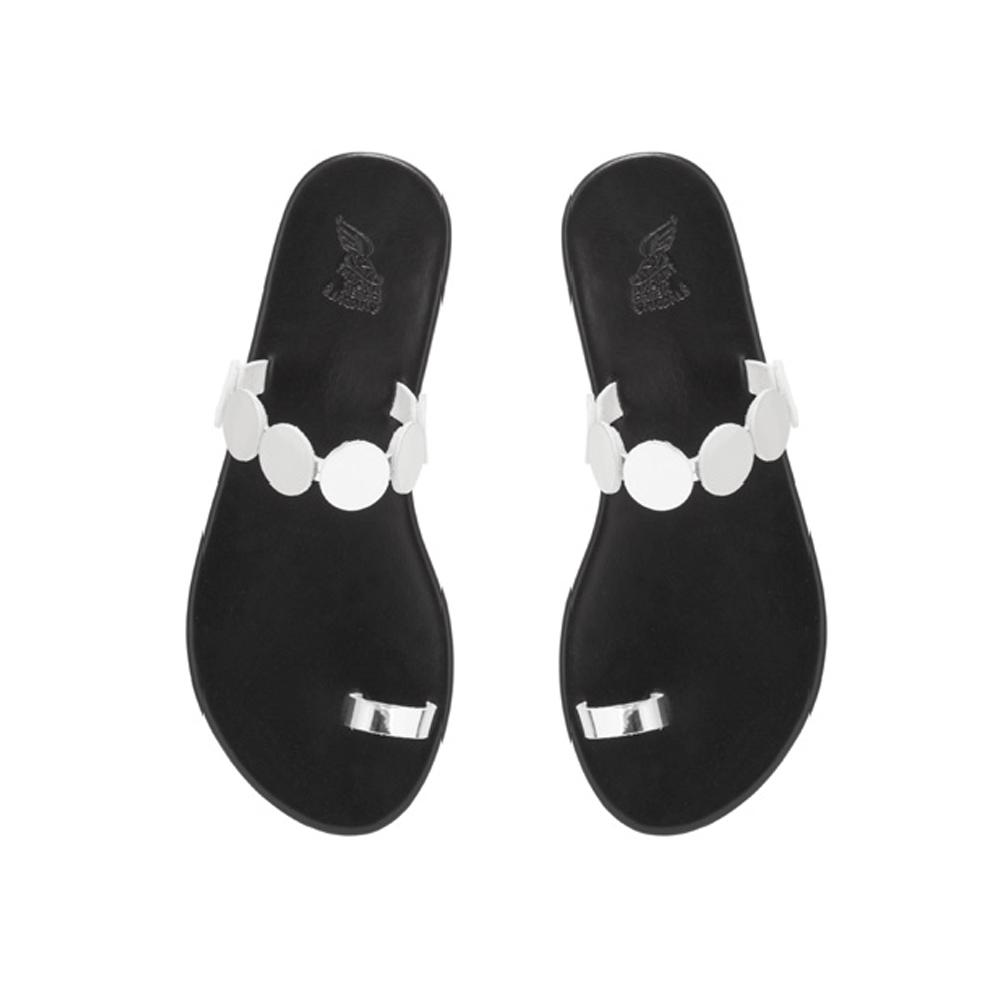 The bestselling Discs collection takes another turn in the spotlight – it's refreshed this style with our new thin flip sole. The Calisto features mirror-leather discs in a toe-ring slide shape to create an eye-catching sandal that will take you out on the town – but in comfort.