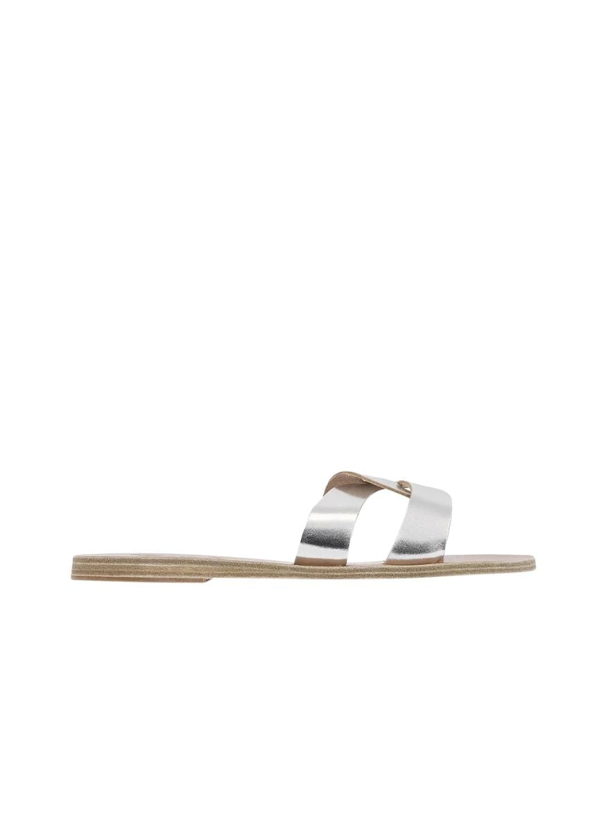 Desmos Leather Slide Sandals Silver