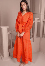 Sunshine Babe Embroidered Ramie Full Sleeve Long Shirtdress Living Coral