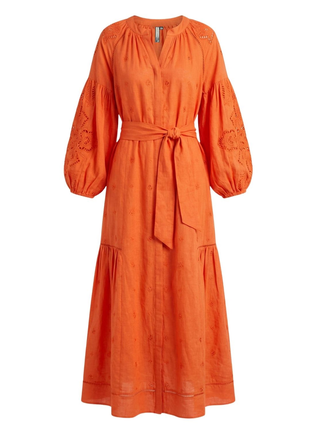 Sunshine Babe Embroidered Ramie Full Sleeve Long Shirtdress Living Coral