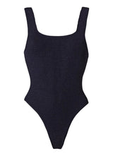 One piece in seersucker fabric with square neckline and high-leg silhouette. Free from wiring or padding, so you can comfortably lounge or swim in it.