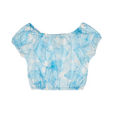 Marie Raxevsky's collection of cute and stylish crop tops are the ultimate go-to pieces for all your little angels this summer! Easy breezy, comfortable and super versatile...you will be reaching out for them every day! Either for chilling at the beach or strolling around with mommy and daddy. This one is decorated in our signature floral print in blue hues and features an elasticated dated off-the-shoulder neckline, as well as an elasticated dated waist and short puff sleeves. Combine it with the matching shorts in either blue or yellow and make a mix and match statement!