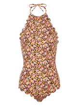 The Mott Maillot is Marysia's staple halter one-piece, with a plunging back. The high neckline provides flattering coverage and support, with added side darts to give this silhouette a continuous sleek appearance. Raw edge, hand cut scallops trim the legs, hips and halter neckline.