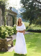 An essential when curating your elevated summer wardrobe this season, the Giorgia White top achieves that perfect mix of luxe and boho appeal. Crafted from breathable broderie anglaise cotton, the cropped top features a shirred waist and scooped neck to compliment the puffed sleeves.