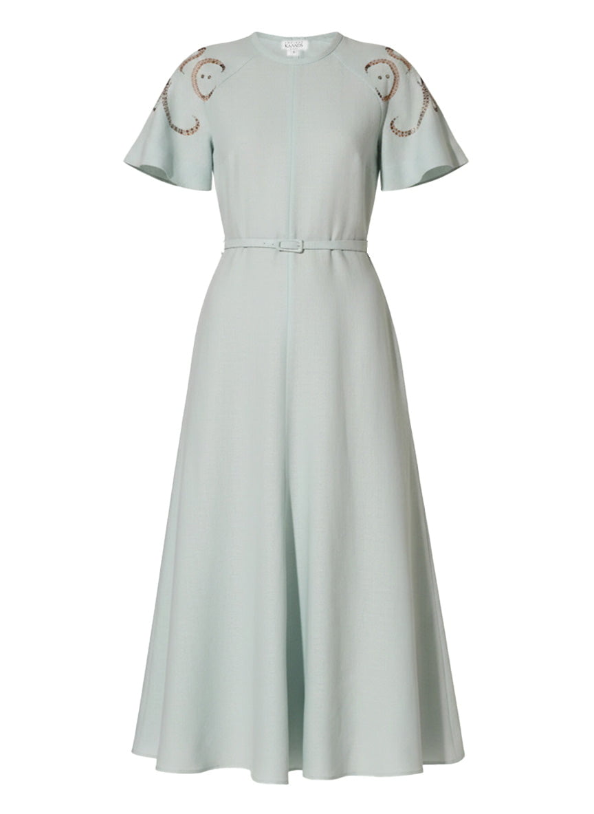 Iphigenia Cut Embroidered Midi Dress Pistachio