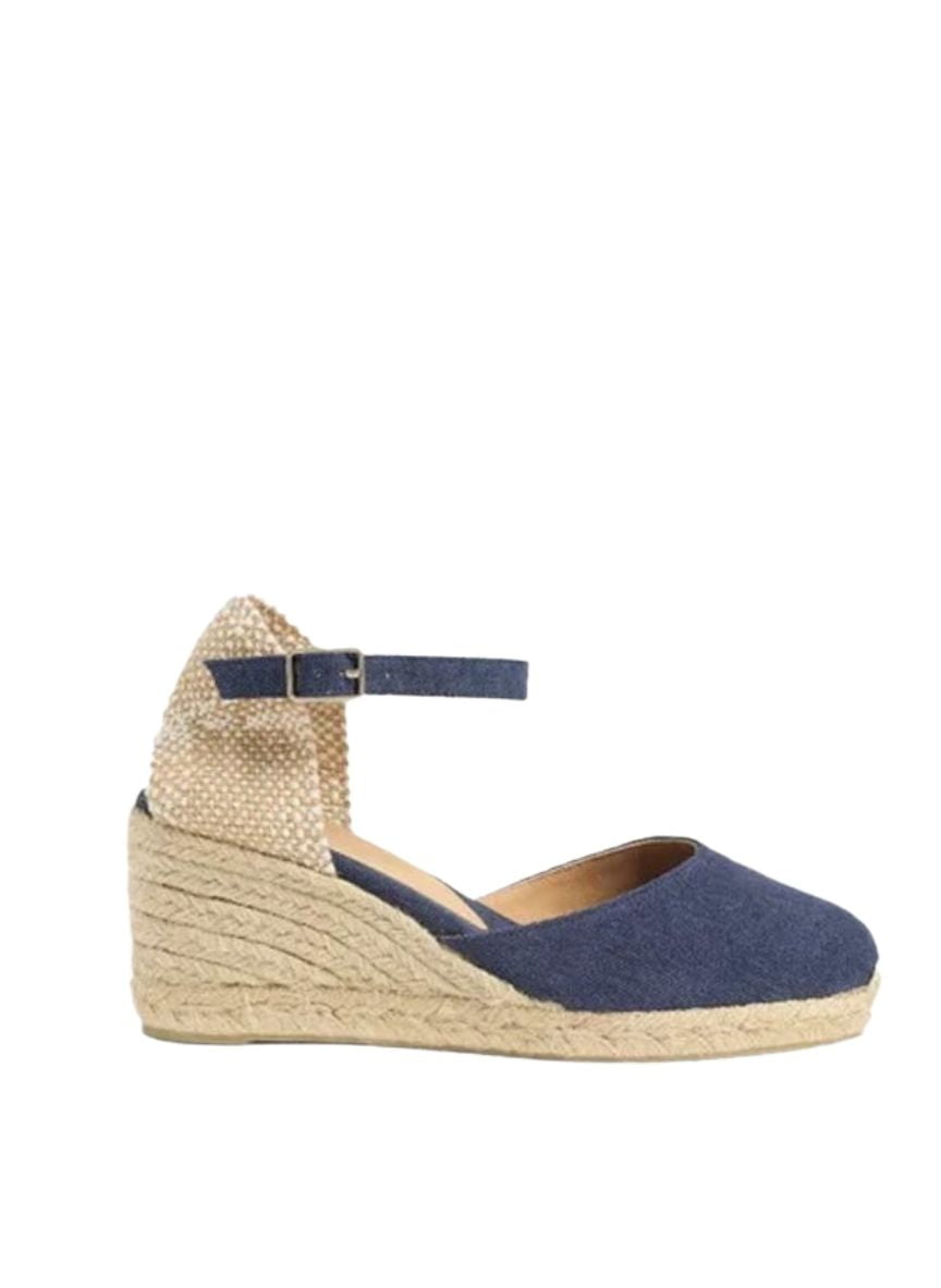 Carol espadrille in washed organic cotton, with bracelet closure, cushioned insole and 7 cm jute wedge.