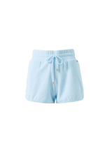 Add to your summer separates collection with the Harley Shorts. Perfect for relaxed, casual dressing, this pair is crafted from premium terry fabric in a soothing shade of ‘Pale Blue’ as part of the High Summer 2023 collection. Taking cues from retro sportswear, this style is cut for runner fit with a comfortable drawstring waistband.
