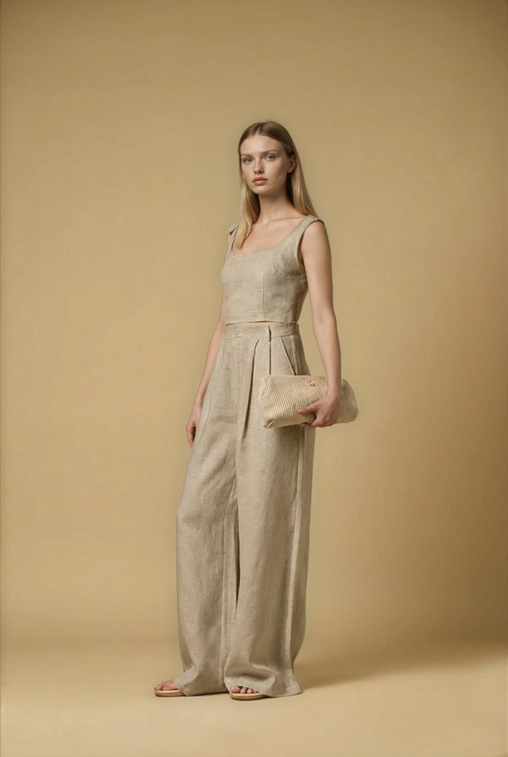 Minimal, sun-ready, and effortlessly chic, the Ira Linen Crop Top is a warm-weather essential designed for clean, modern styling. Crafted from premium heavy linen, this structured crop top offers breathability with a naturally textured finish, perfect for elevated summer dressing.