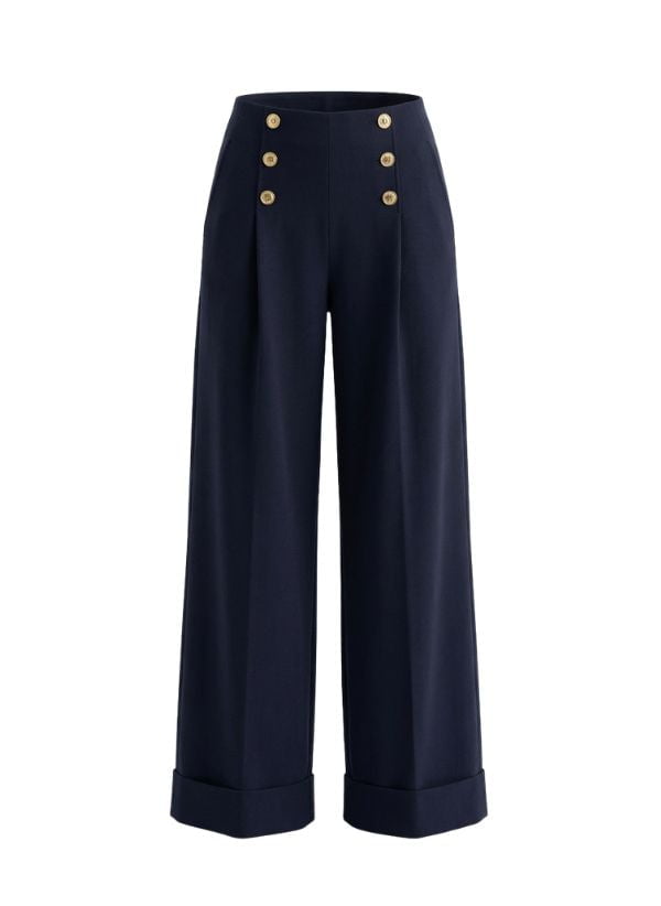 Sailor High-waisted Cotton Denim Trousers Navy Blue