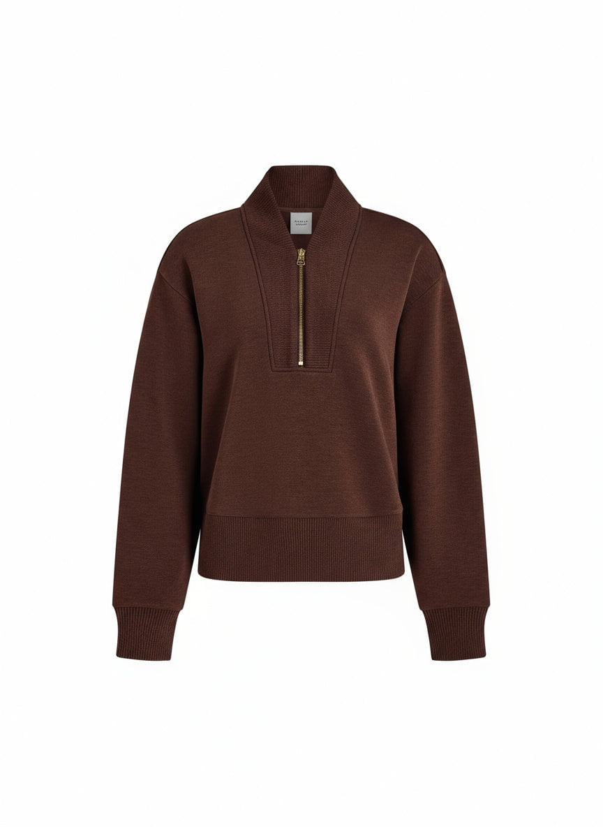 Perfect for everyday layering, the Sally half-zip sweat is a new take on the bestselling Davidson sweat. Crafted from our signature DoubleSoft® fabric, it is accentuated with chunky rib knit detailing on the V-neckline panel, the hemband, and the cuffs. Cut to a regular length, with long sleeves and a dropped shoulder, it is a versatile style for any day.