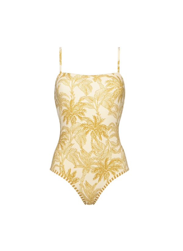 This season, the iconic Aquarelle swimsuit comes in the Voyage print. Made from Peau Douce material, the sleek Tropical model flatters all body shapes.